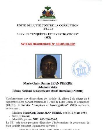 Dans le cadre de l’enquête en cours autour de la subvention accordée au Réseau National de Défense des Droits Humains (RNDDH) par le Bureau de Monétisation des Programmes d’Aide au Développement (BMPAD), Madame Marie Gesly Damas Jean Pierre, administratrice de l’organisme de droits humains fait l’objet d’une poursuite.